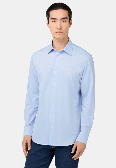 Рубашка с нью-йоркским воротником. Изготовлена из японского хлопкового и полиэфирного джерси. Состав и специальная структура ткани гарантируют впечатляющую устойчивость к образованию складок, максимальный комфорт, отличную воздухопроницаемость и лёгкий уход.