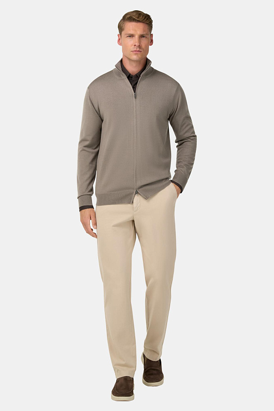 Свитер на полумолнии. Выполнен из экстра-тонкой мериносовой шерсти.